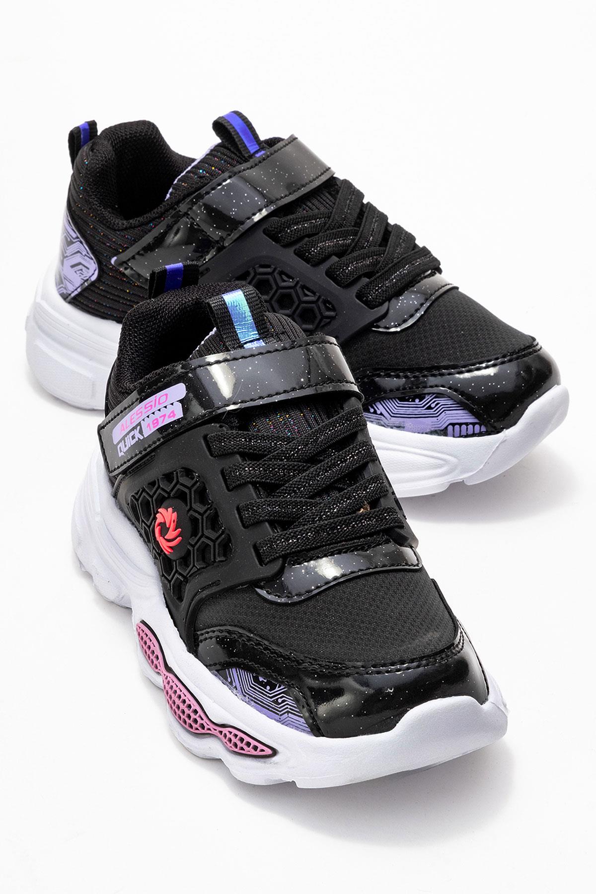 Bağcıklı Cırtlı Çocuk Spor Ayakkabı; SİYAH LİLA BEYAZ (F34002910018 SİYAH LİLA BEYAZ)
