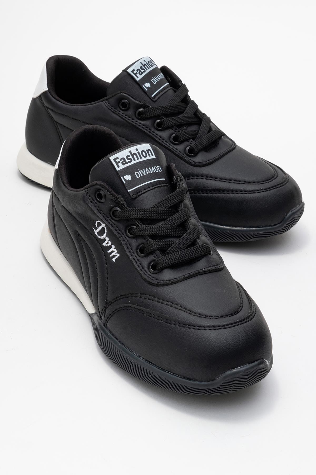 Bağcıklı Kadın Spor Ayakkabı; SİYAH BEYAZ