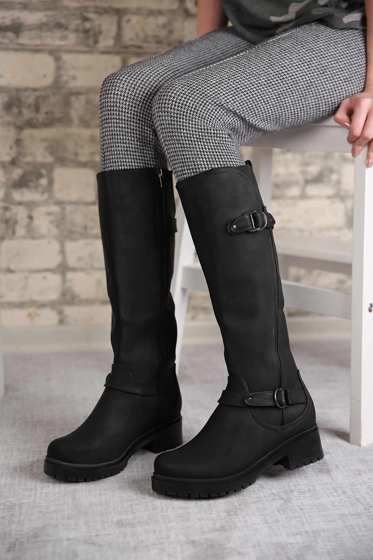 Bayan 2 Tokalı Topuklu Çizme SİYAH ZÜMRÜT