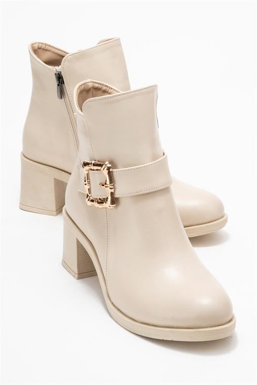 Kadın Büyük Altın Tokalı Topuklu Bot BEJ CİLT (Z35002100010 BEJ CİLT)