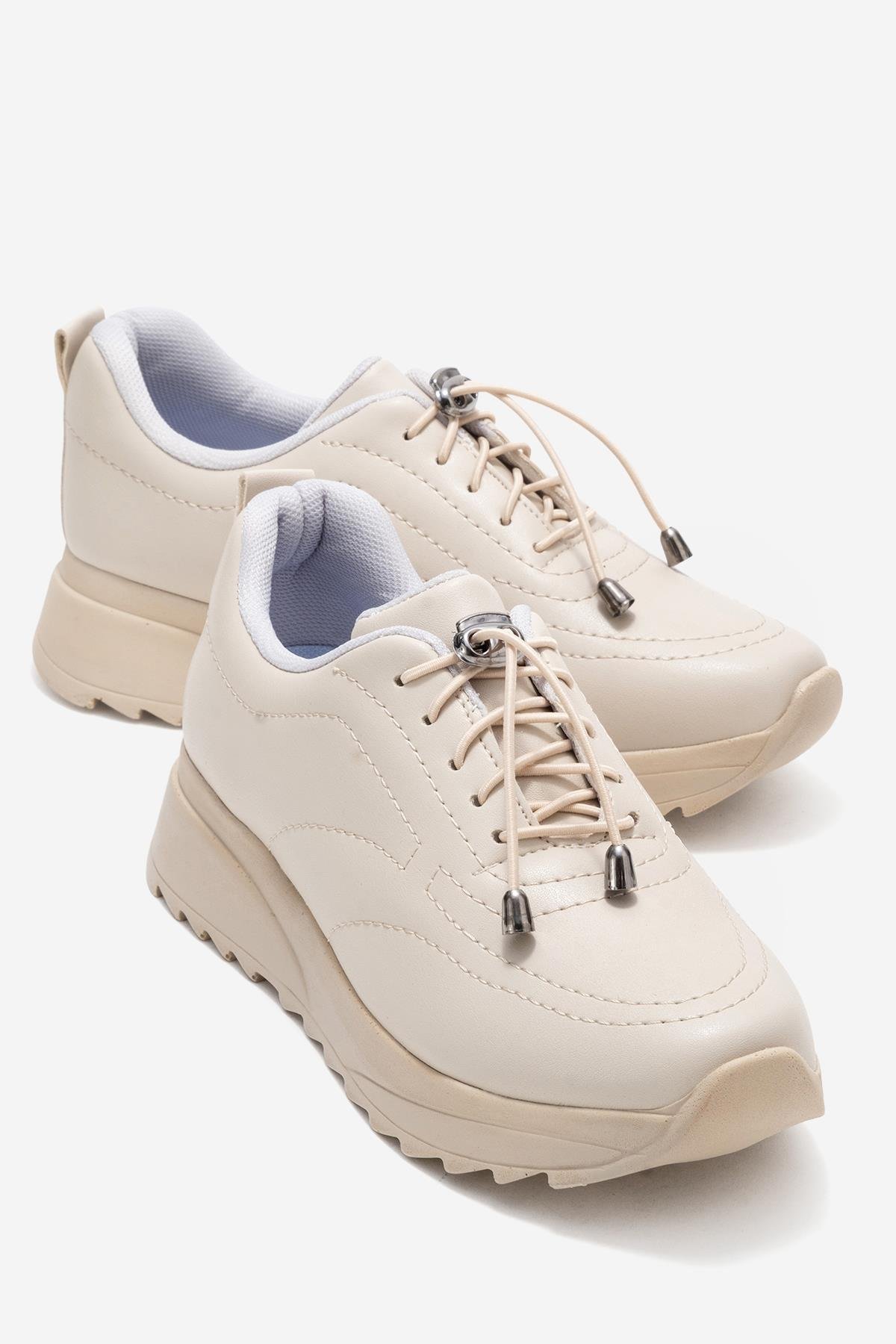 Kadın Dikişli Lastikli Spor Ayakkabı BEJ BEJ