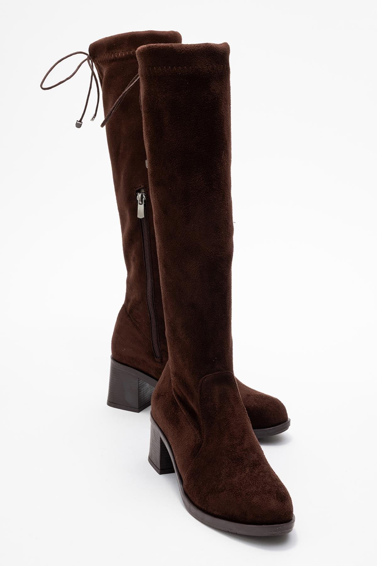 Kadın Dizaltı Streç Topuklu Çizme; KAHVE SÜET (Z35002100016 KAHVE SÜET)