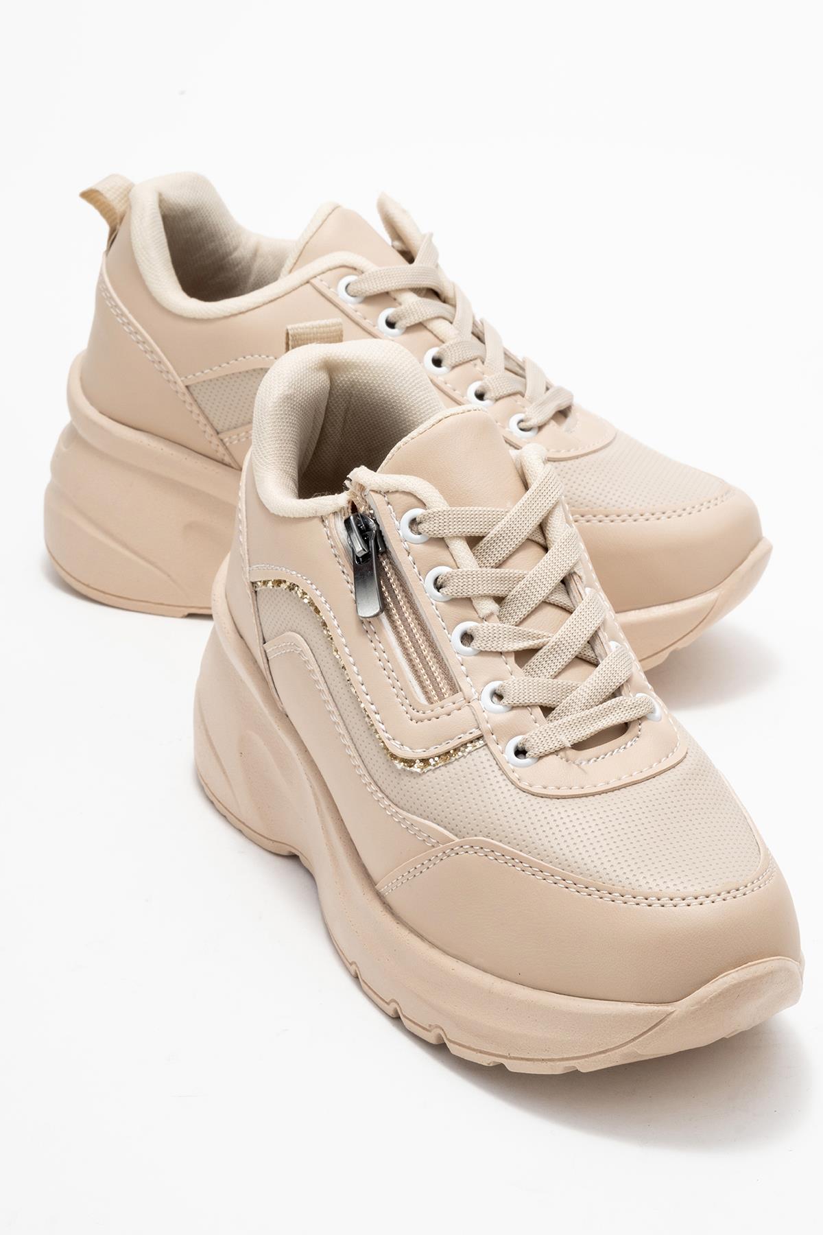Kadın Fermuarlı Bağcıklı Spor Ayakkabı; BEJ