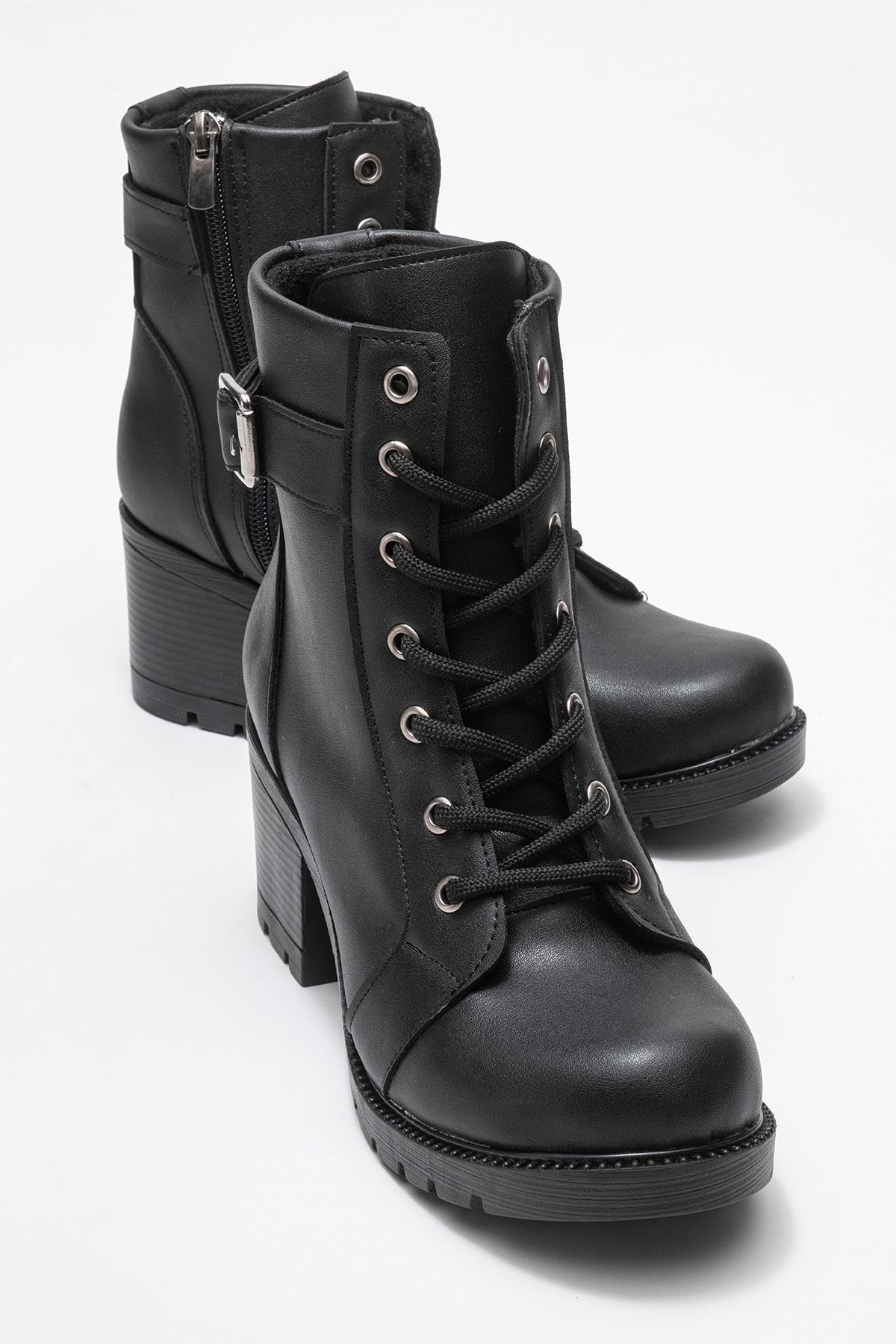 Kadın Tokalı Bağcıklı Topuklu Bot SİYAH CİLT (Z45000200035 SİYAH CİLT)