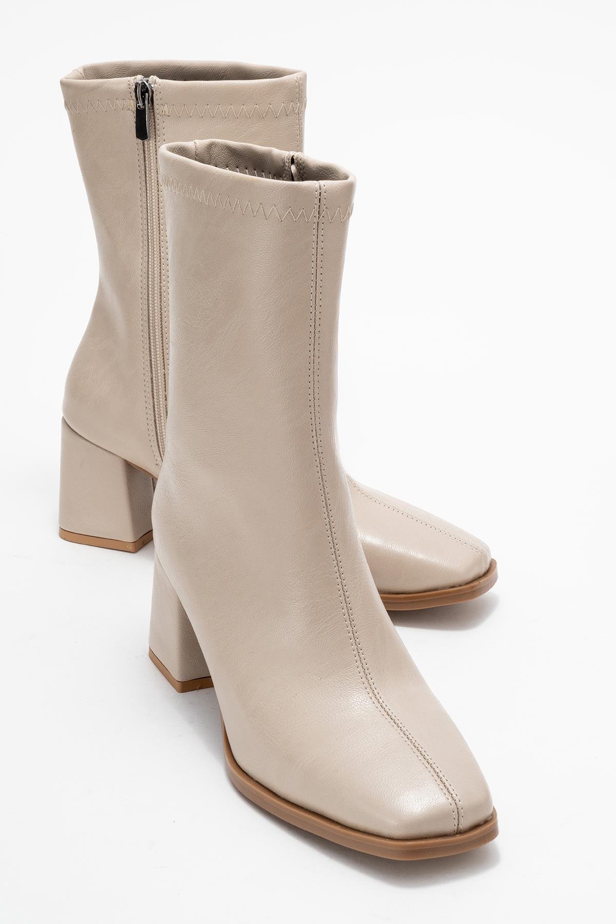Küt Burunlu Sade Dikişli Fermuarlı Kadın Topuklu Bot TEN CİLT (Z35001400045 TEN CİLT)