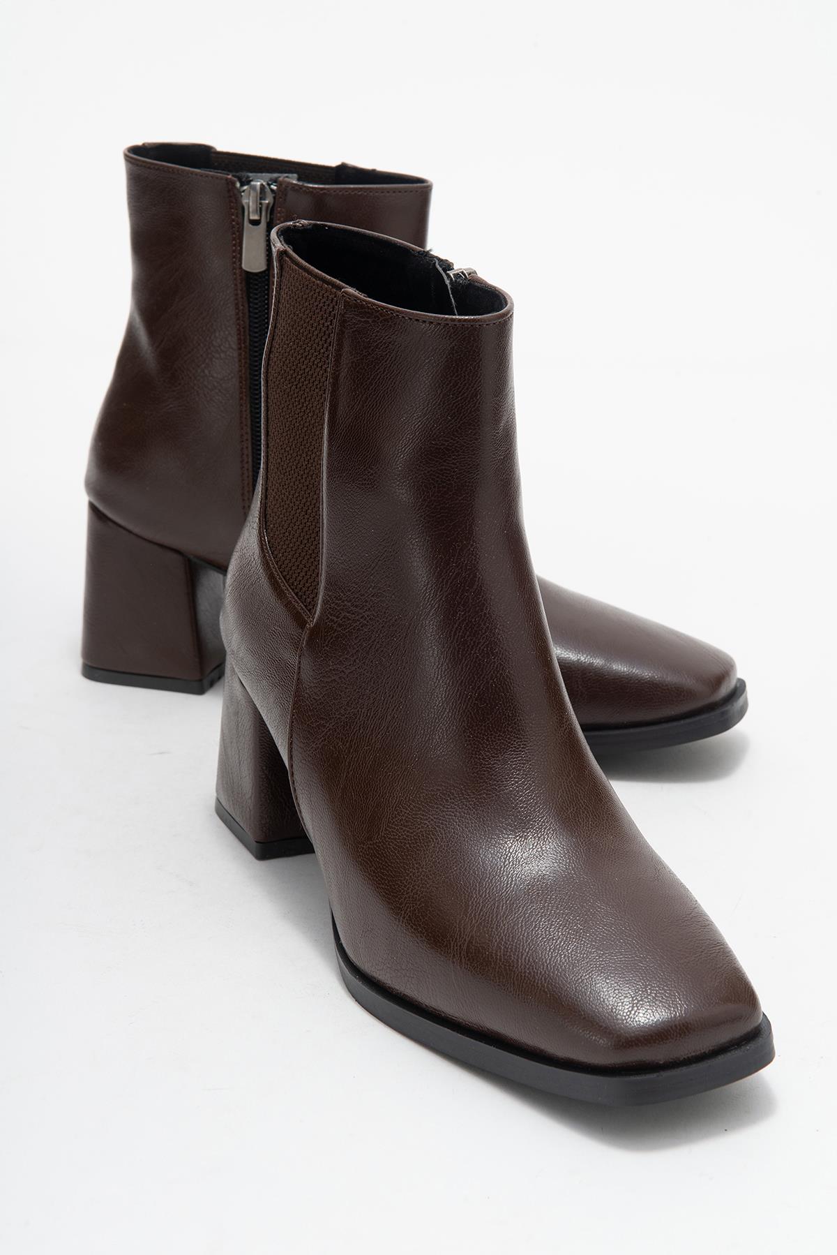 Küt Burunlu Sade Lastikli Kadın Topuklu Bot KAHVE CİLT (Z35001400042 KAHVE CİLT)