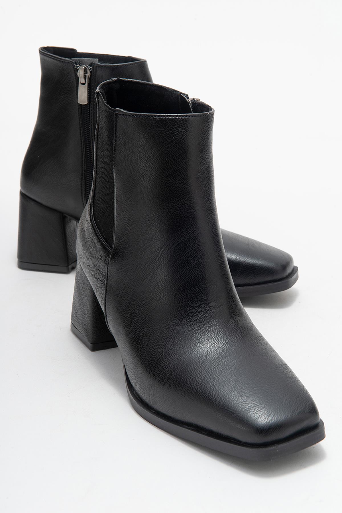 Küt Burunlu Sade Lastikli Kadın Topuklu Bot SİYAH CİLT (Z35001400042 SİYAH CİLT)