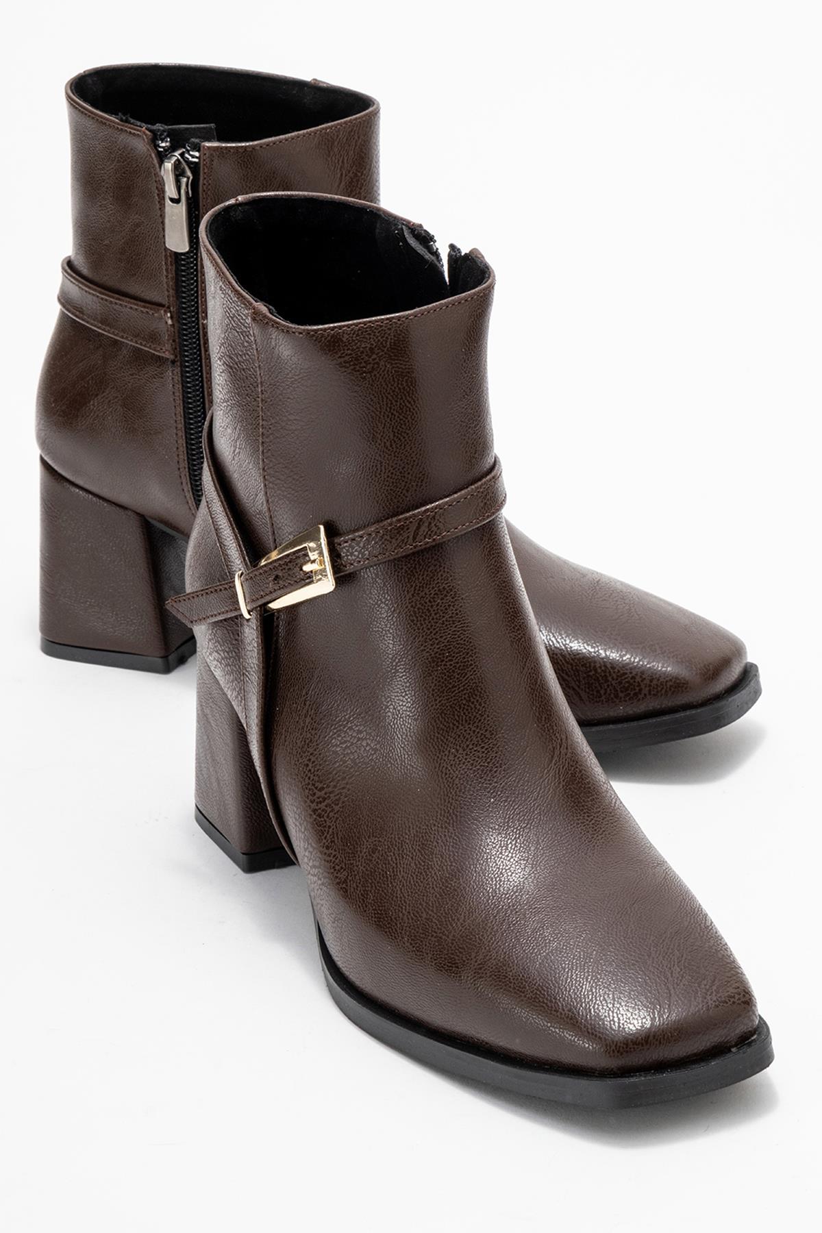 Küt Burunlu Tokalı Kadın Topuklu Bot KAHVE CİLT (Z35001400046 KAHVE CİLT)