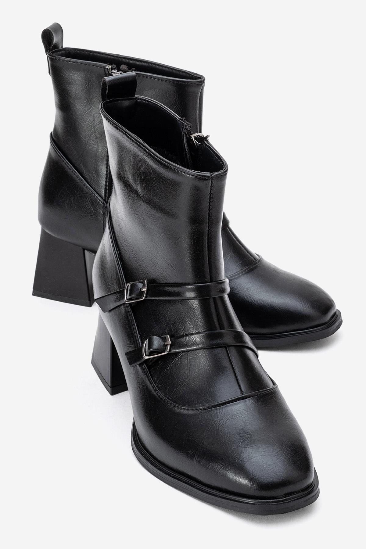 Sade Çift Tokalı Küt Burunlu Topuklu Bot SİYAH CİLT (Z35001400057 SİYAH CİLT)
