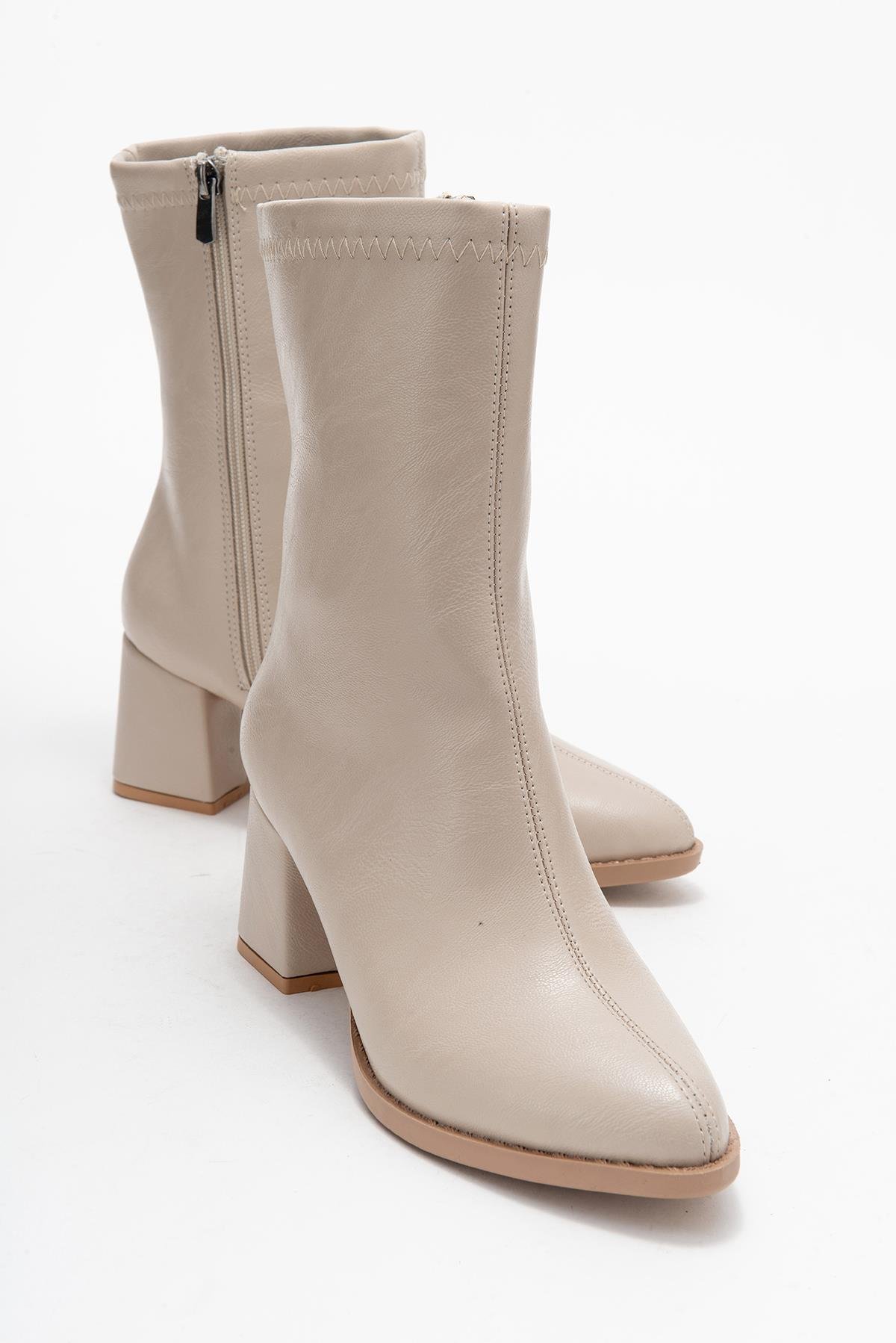 Sade Dikişli Fermuarlı Kadın Topuklu Bot TEN CİLT (Z35001400044 TEN CİLT)