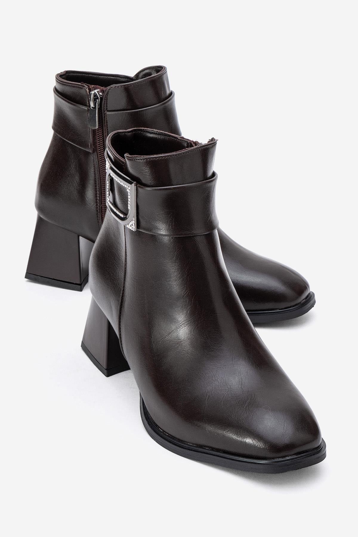 Sade Kare Tokalı Küt Burunlu Topuklu Bot KAHVE CİLT (Z35001400059 KAHVE CİLT)
