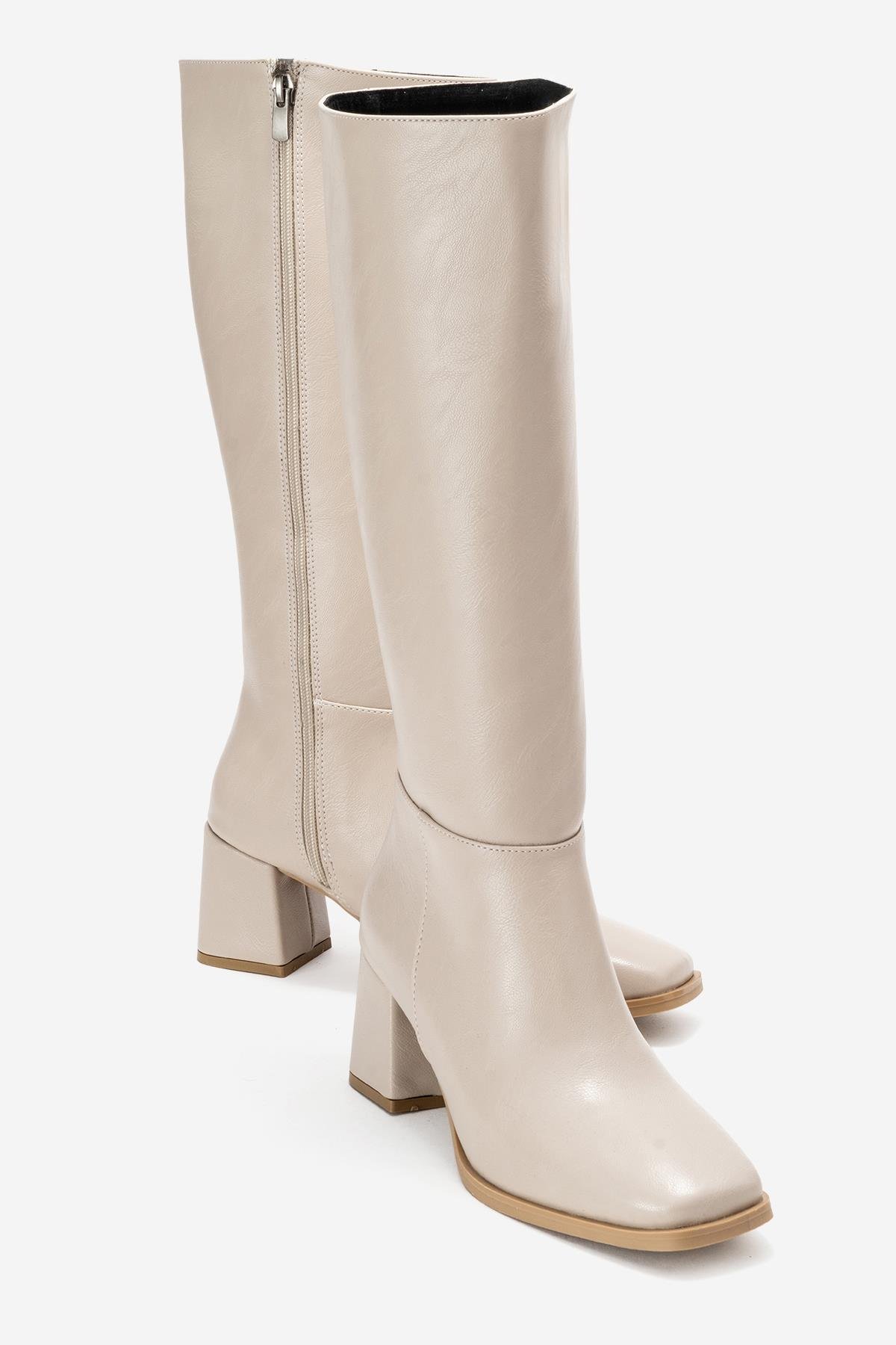 Sade Küt Burunlu Topuklu Kadın Çizme BEJ CİLT (Z35001400054 BEJ CİLT)