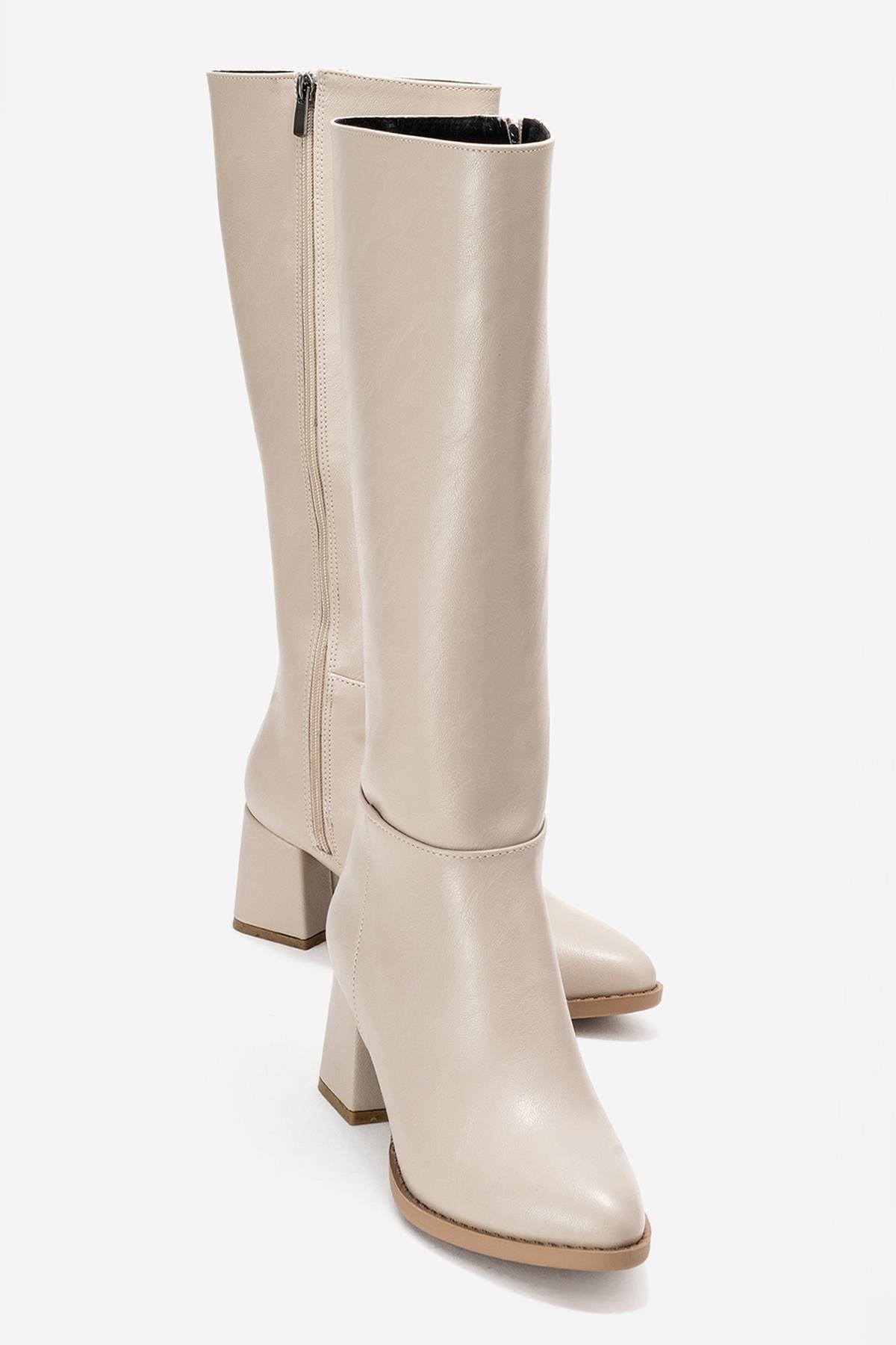 Sade Sivri Burunlu Topuklu Kadın Çizme BEJ CİLT (Z35001400055 BEJ CİLT)
