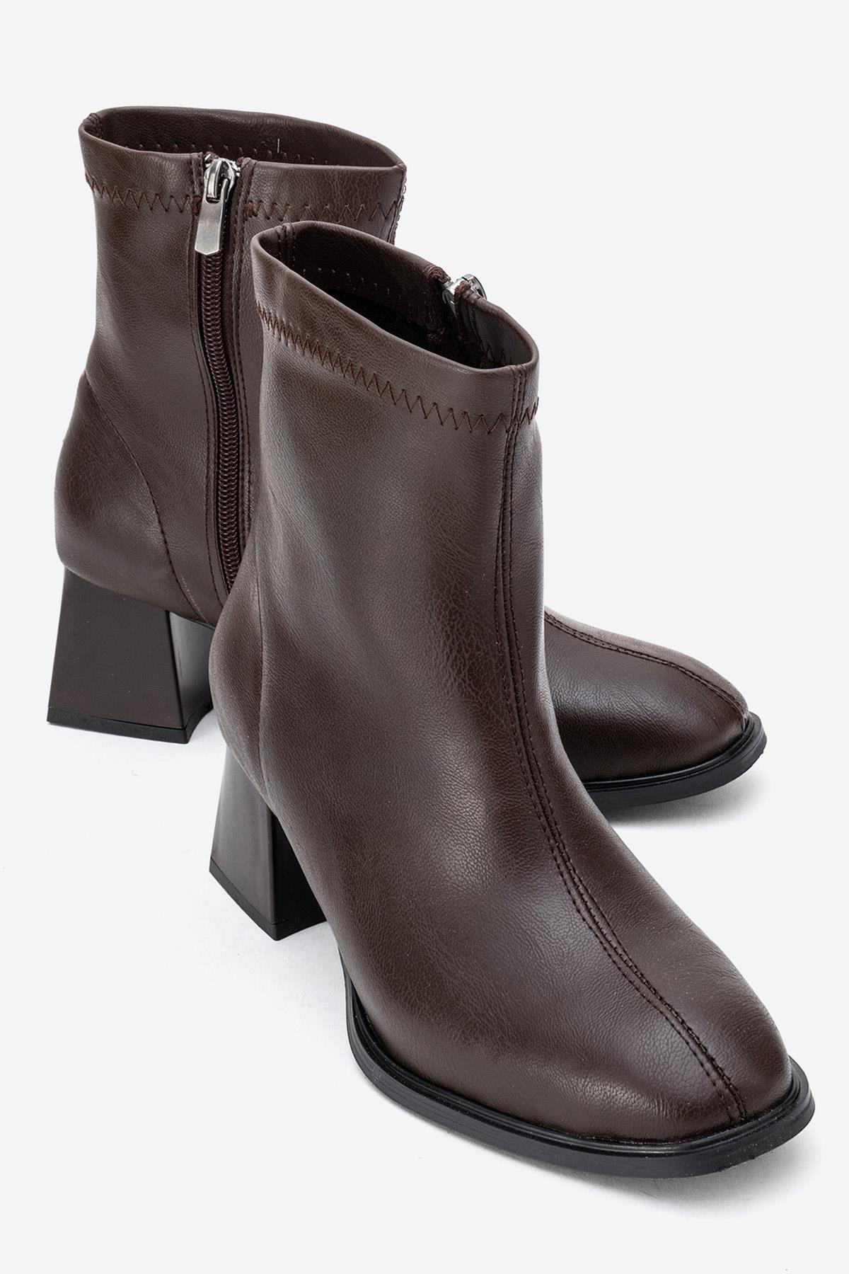 Sade Streçli Küt Burunlu Bot KAHVE CİLT (Z35001400058 KAHVE CİLT)