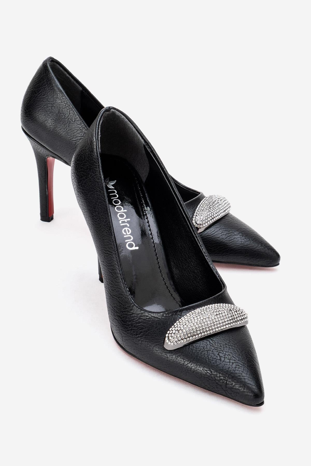 Taşlı Kadın Stiletto Ayakkabı SİYAH CİLT